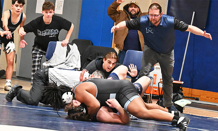 106 Anthony Perez (M) pin Nathan Miller (A), 1:57; 113: Chase Davies (A) forfeit; 120 Joshua Ramos (M) pin Joe Probulis (A), 1:57; 126 Mason Beecher (A) pin Andrew Scharper (M), 3:55; 132 Juan Albrincoles (M) pin Liam Hildinger (A), 3:10; 138 Ayden Beecher (A) pin Gage Voccola (M), 1:24; 144 Max Voss (A) pin Marcus Woods (M), 5:44; 150 Thomas Frez (A) pin Justin Ramirez (M), 1:38; 157: Isaiah McDaniel (M) forfeit; 165 Jason Felice (M) pin Nick Vanvalkenburgh (A), 0:37; 175: Jadiel Espinal (M) forfeit; 190 David Sanchez (M) pin Alex Nieves (A), 0:54; 215 Ca’mani Mcdaniel (M) pin Konrad Lojewski (A), 5:35; 285 Zaikwan Hill (M) pin Darryl O’meally (A), 1:20