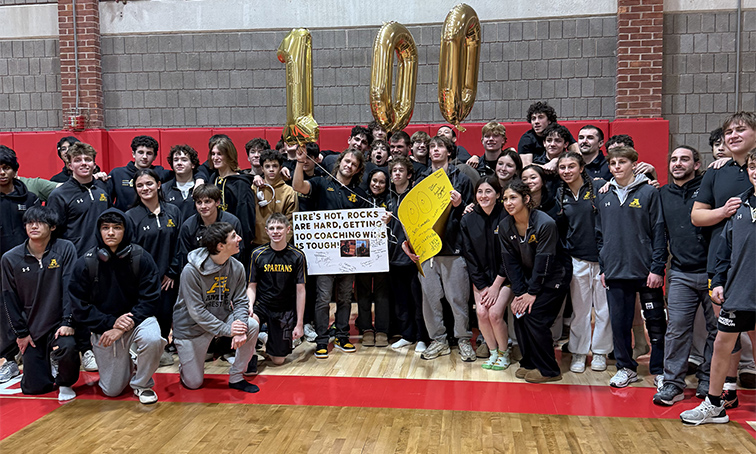 Amity Regional coach Todd Patterson got his 100th career win in Wednesday night’s victory over Branford. (Photo courtesy Ryan Roddy)