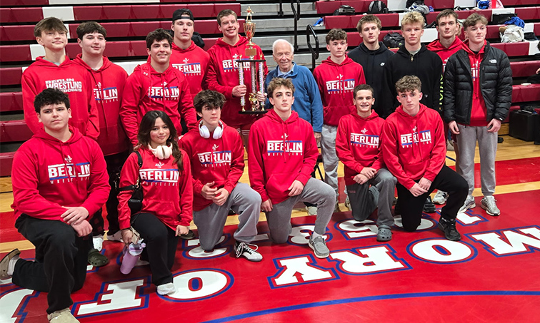 With four pins and a technical fall, Berlin beat RHAM, 47-30 to capture the 37th annual Art Powers Duals for a record eighth time and the first time since 2018.